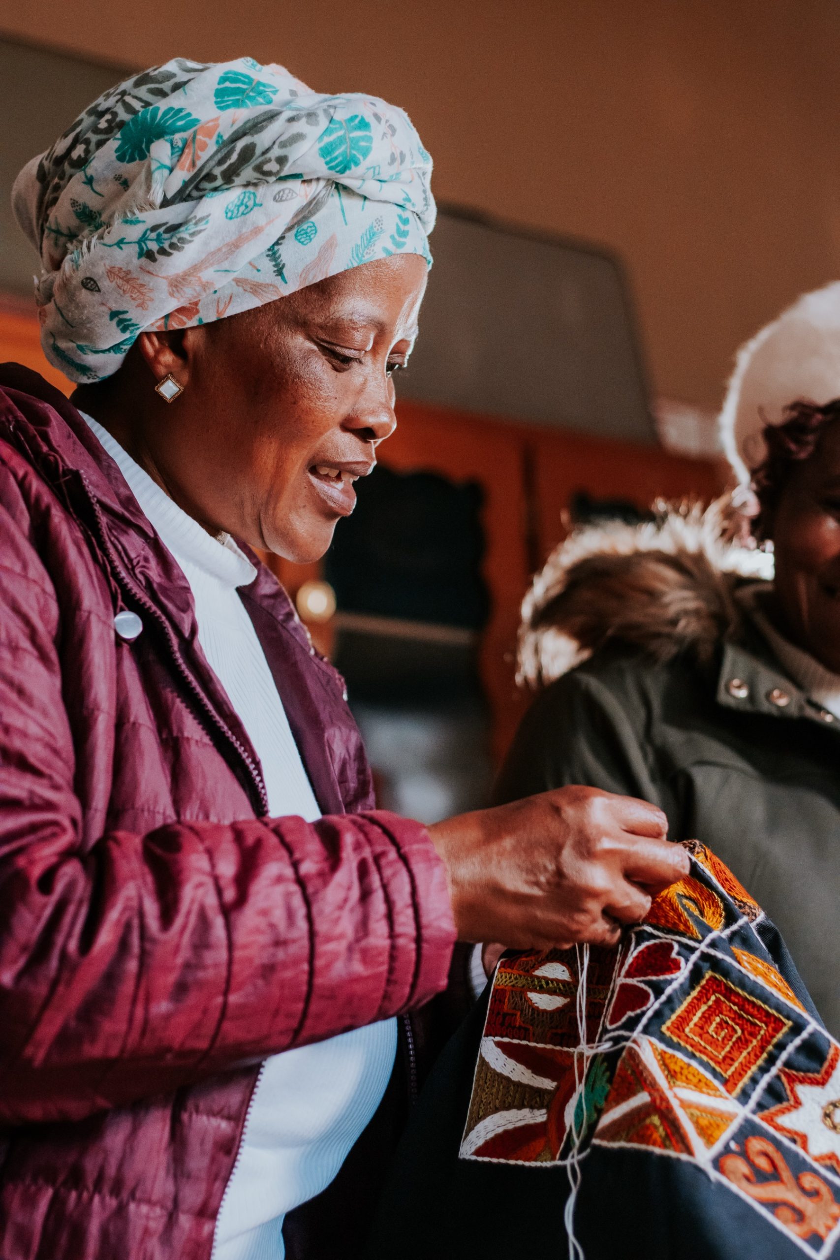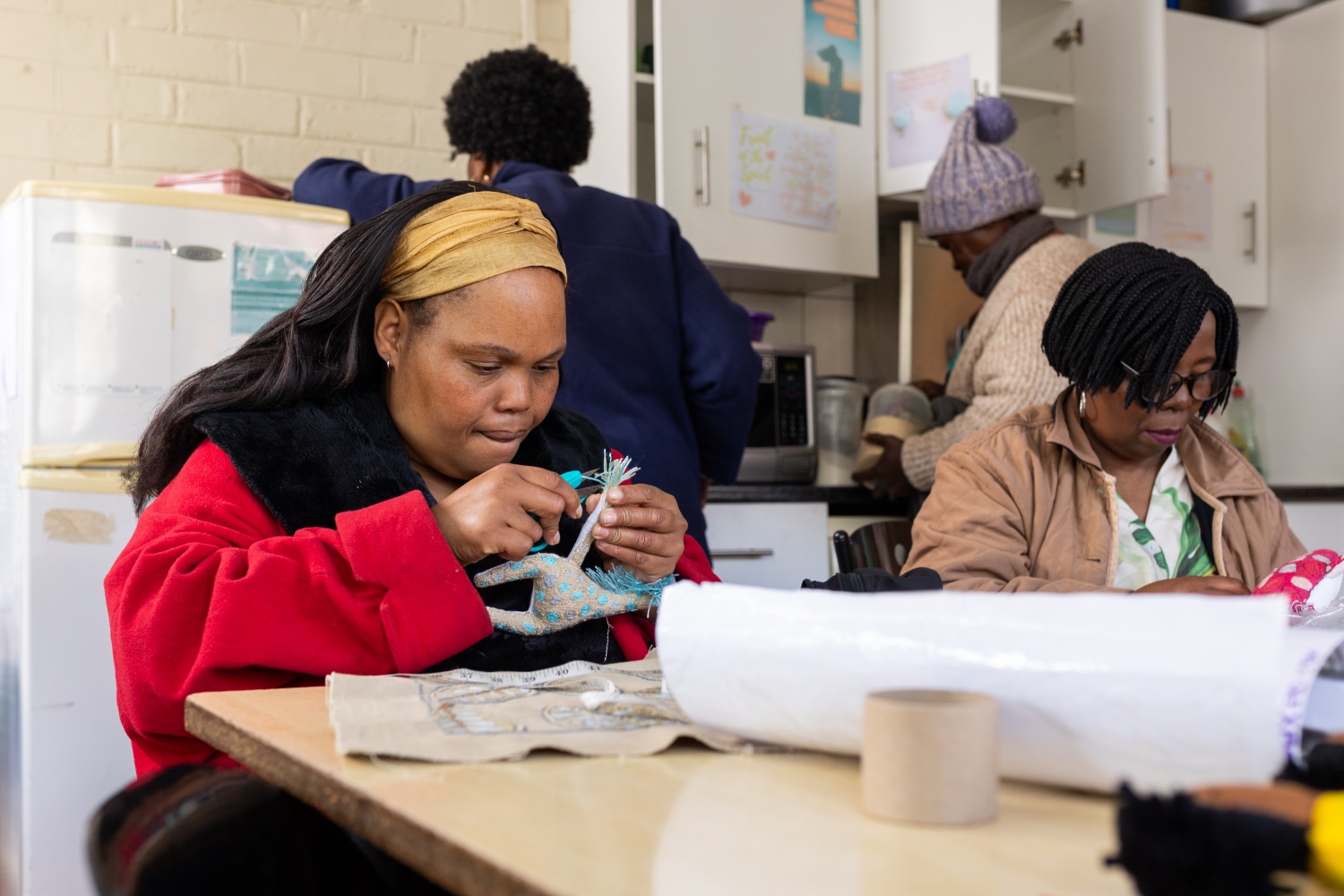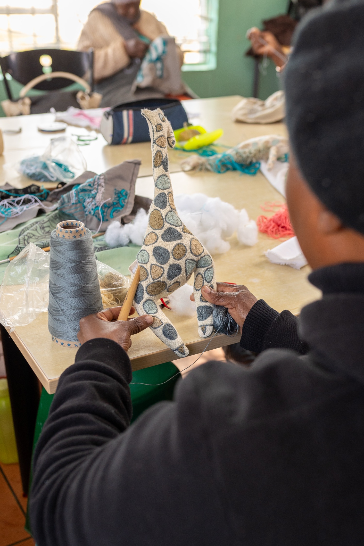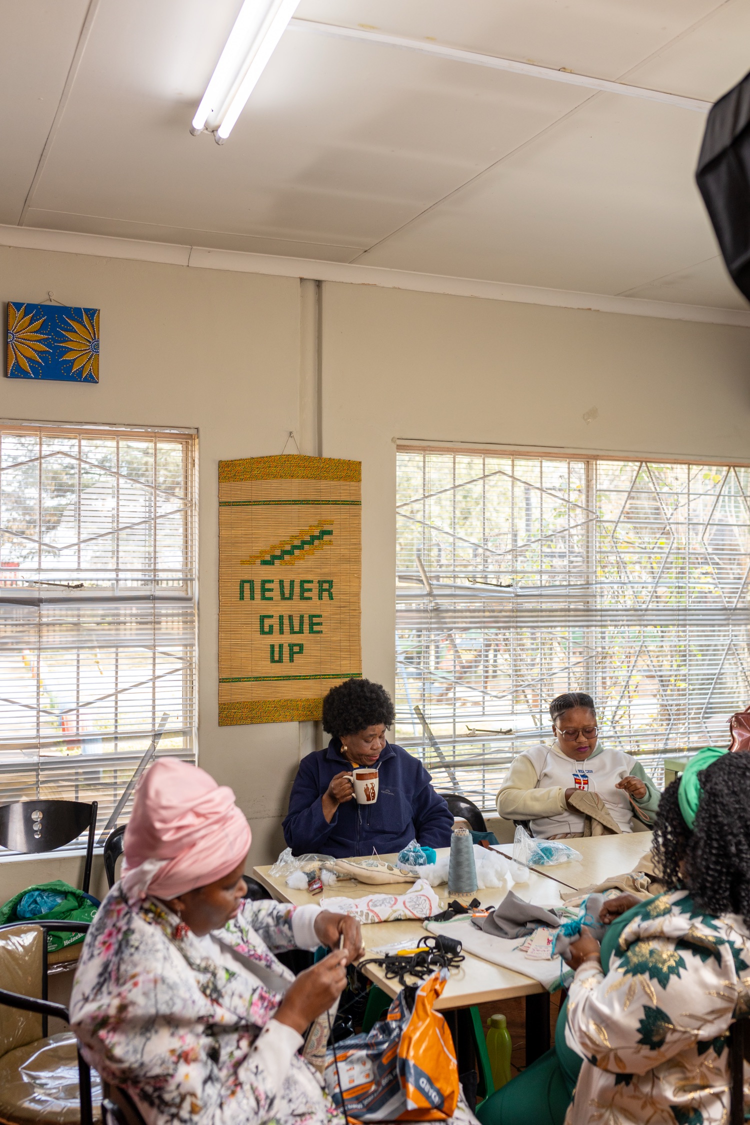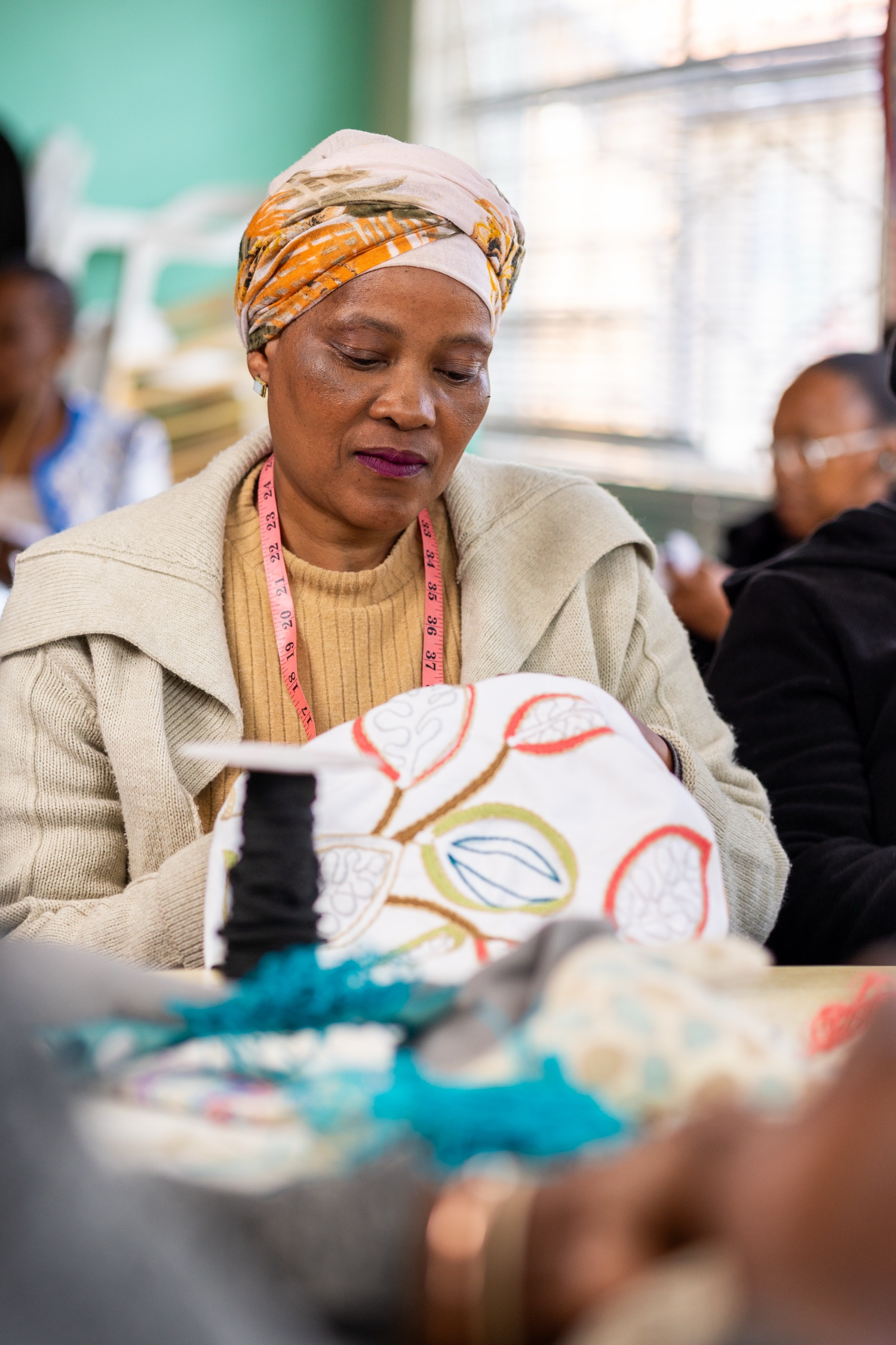 Each week, groups meet at our central hub just outside Johannesburg to exchange ideas, collect materials, share techniques, and deliver finished work for quality control. From there, they take the craft home — where work fits around real life.