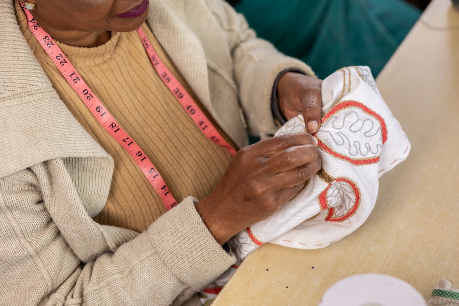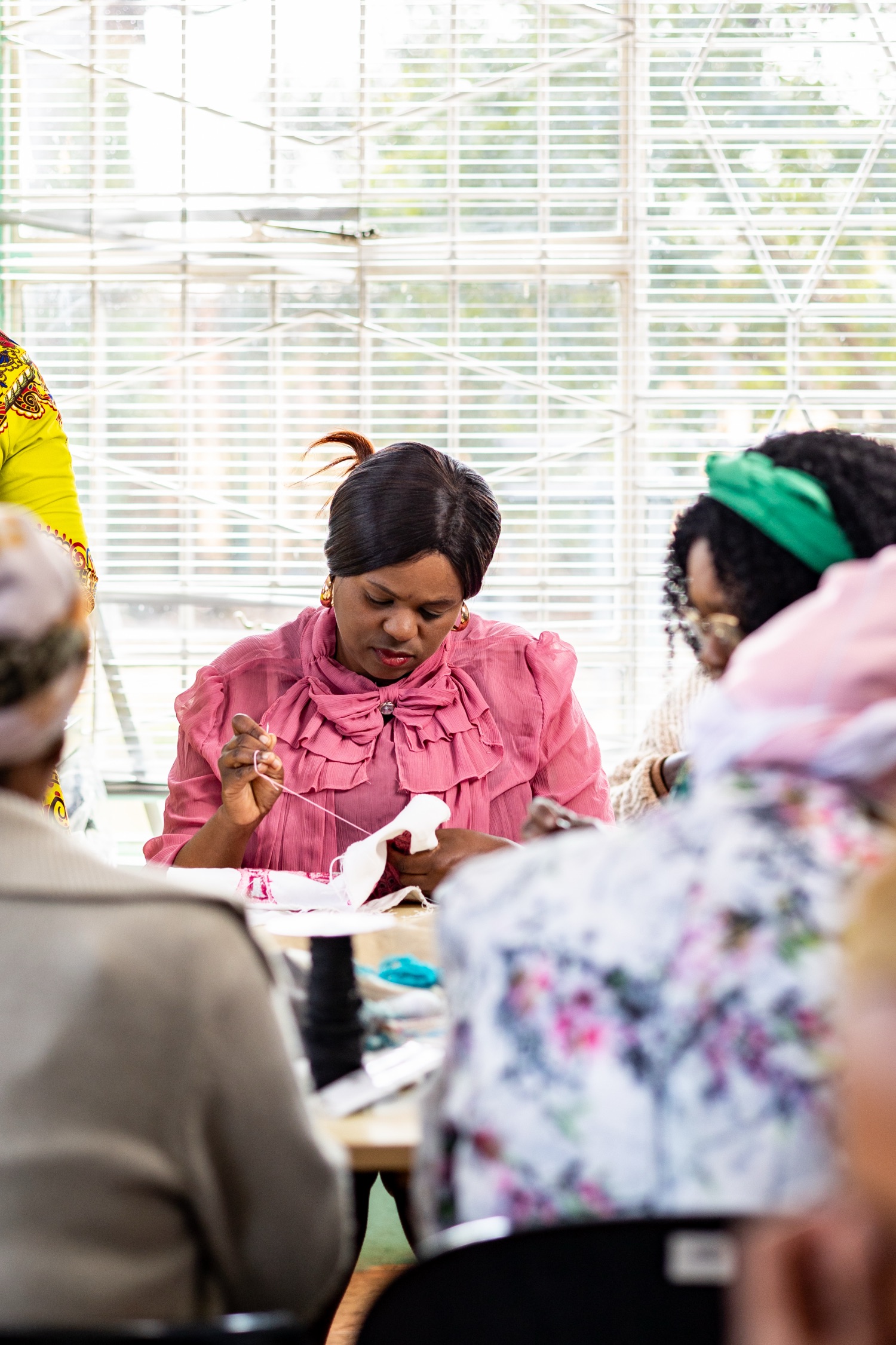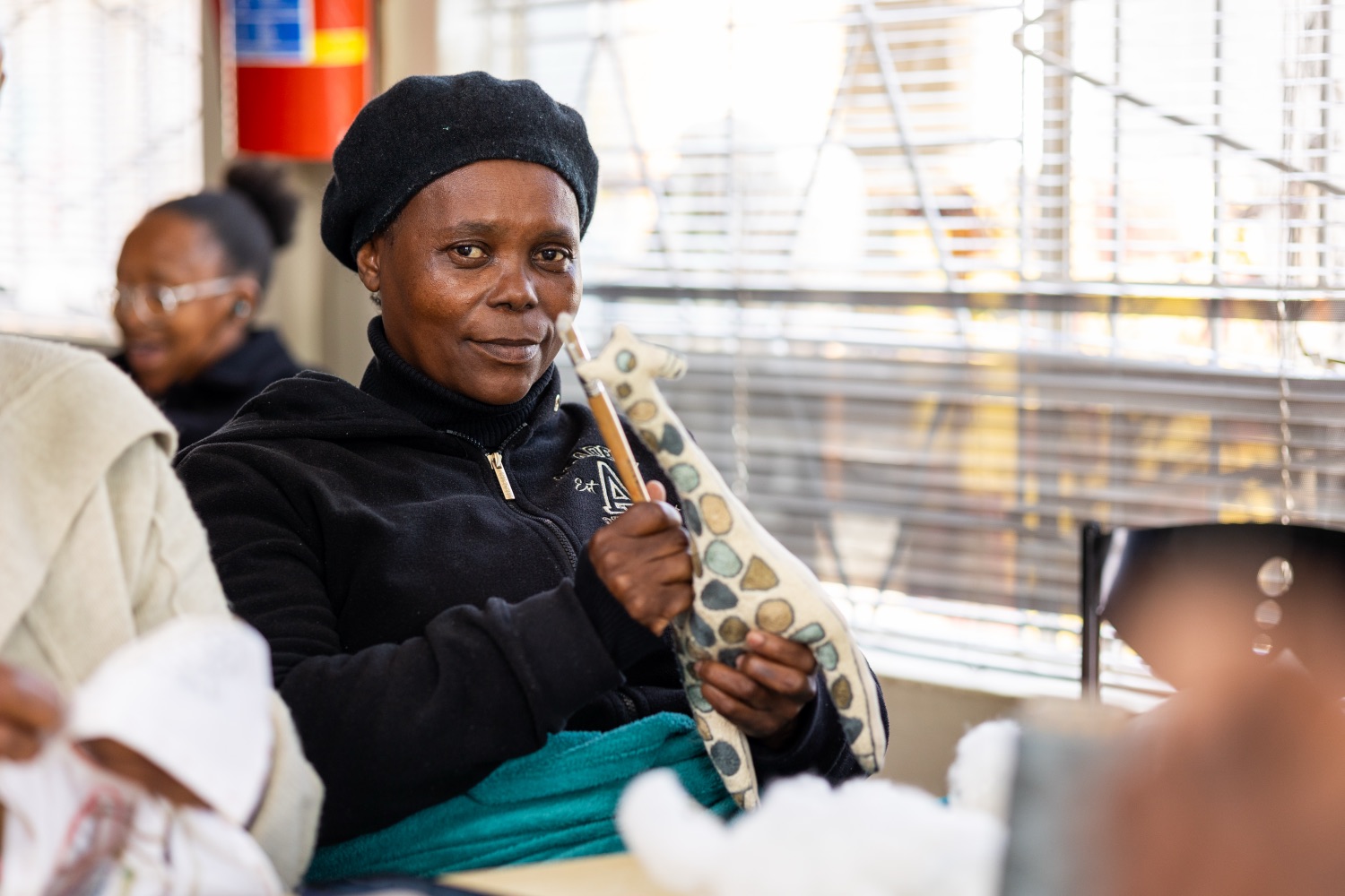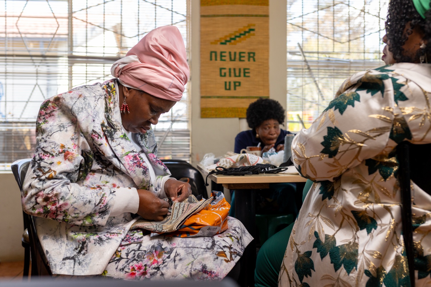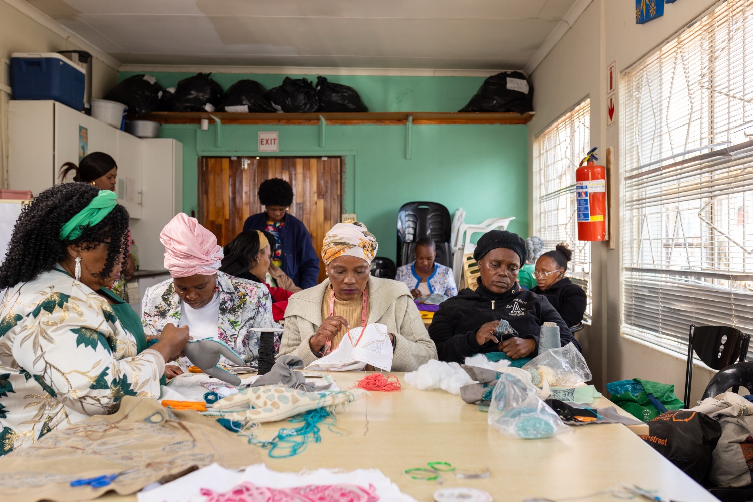 Each week, groups meet at our central hub just outside Johannesburg to exchange ideas, collect materials, share techniques, and deliver finished work for quality control. From there, they take the craft home — where work fits around real life.