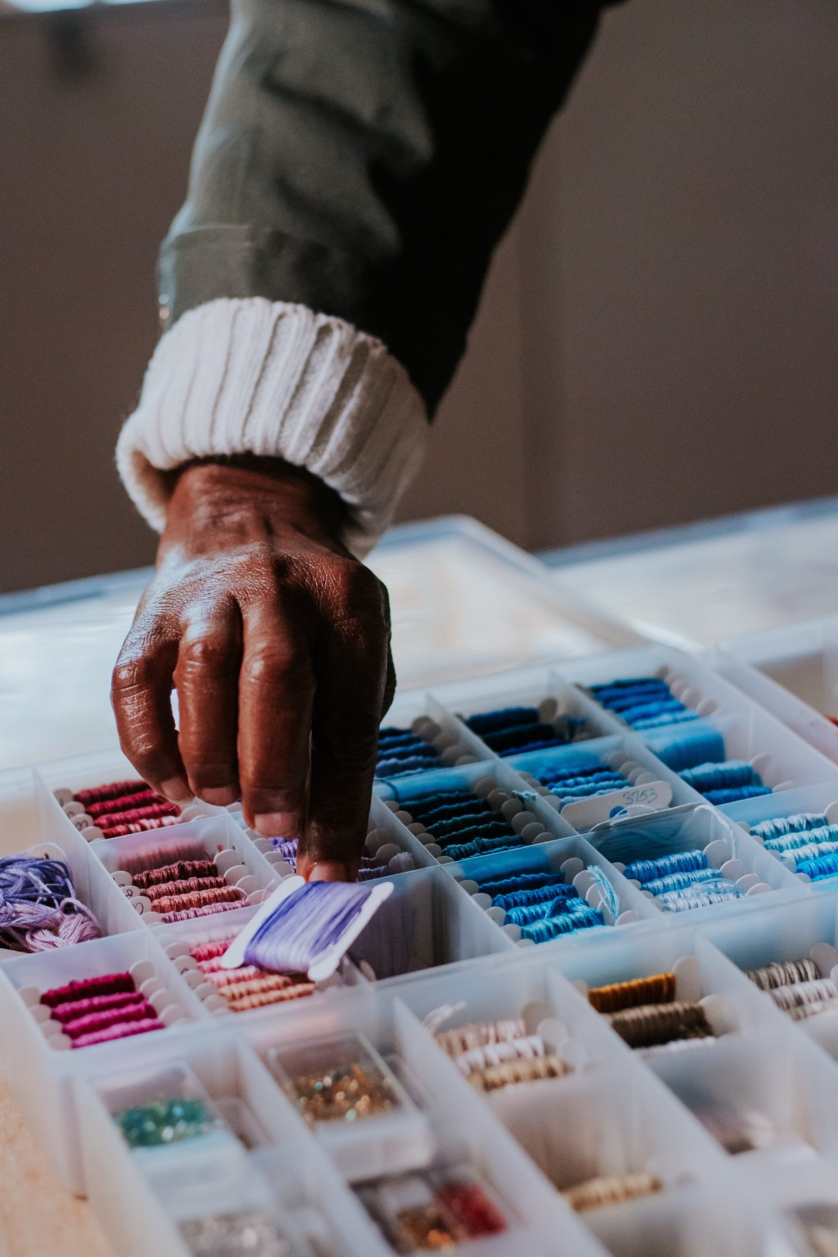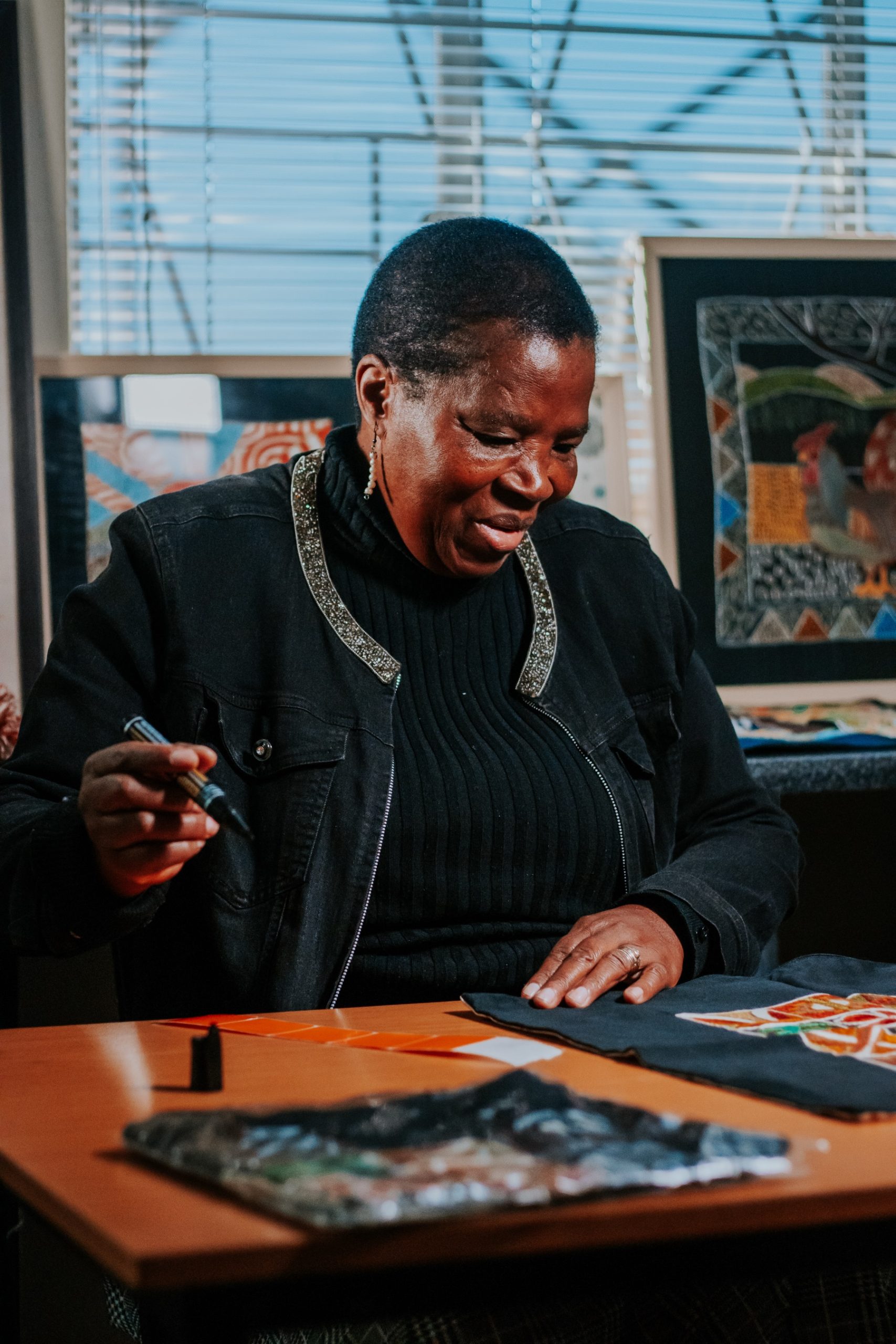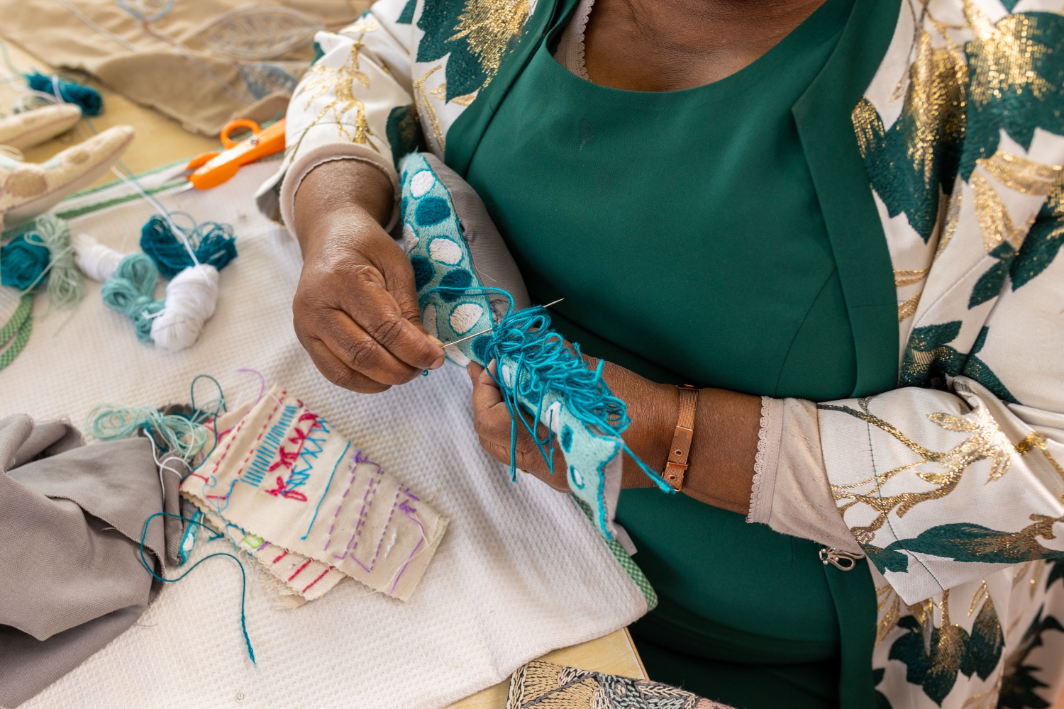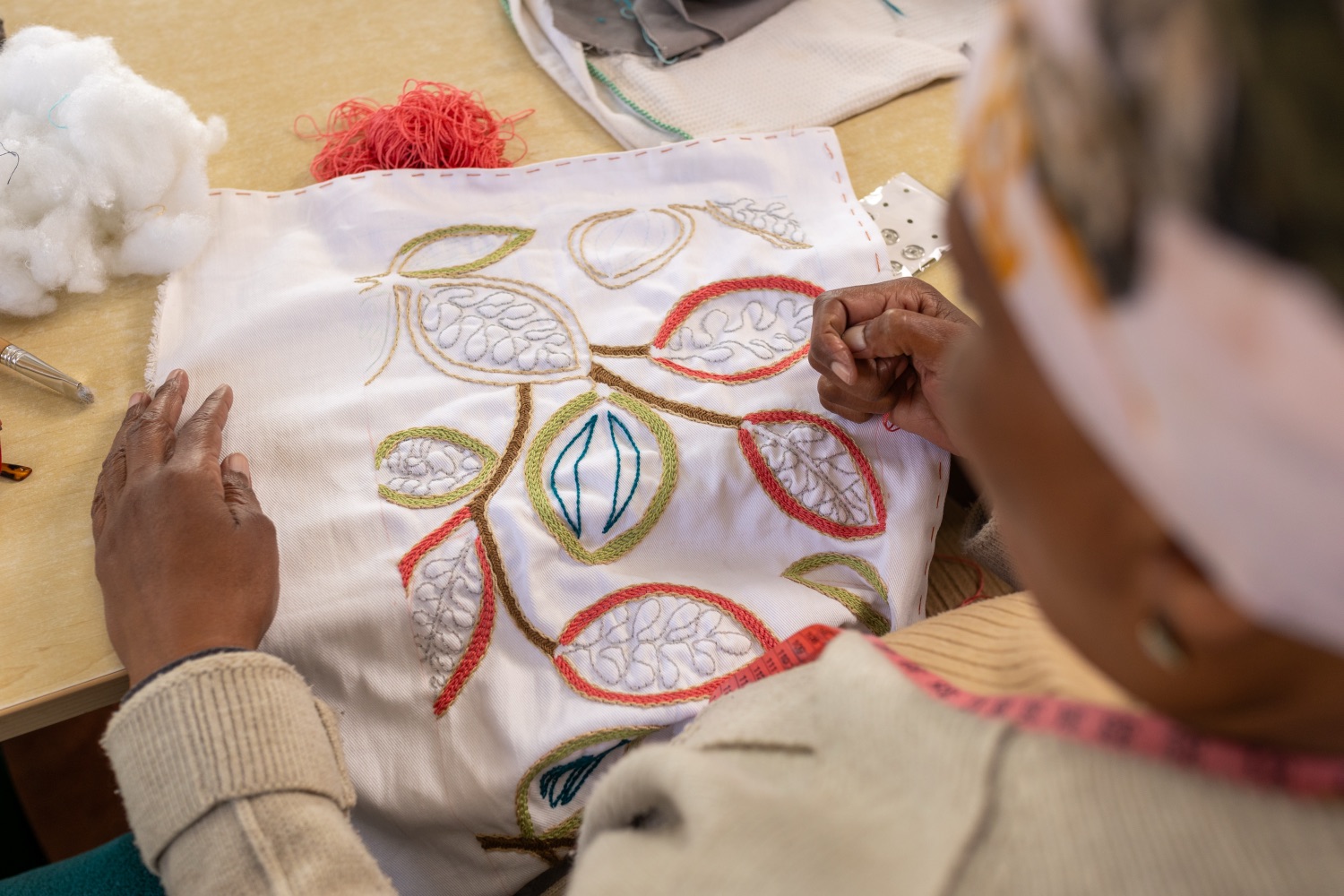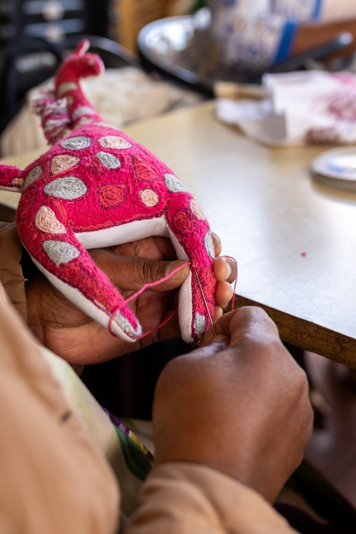 Each week, groups meet at our central hub just outside Johannesburg to exchange ideas, collect materials, share techniques, and deliver finished work for quality control. From there, they take the craft home — where work fits around real life.
