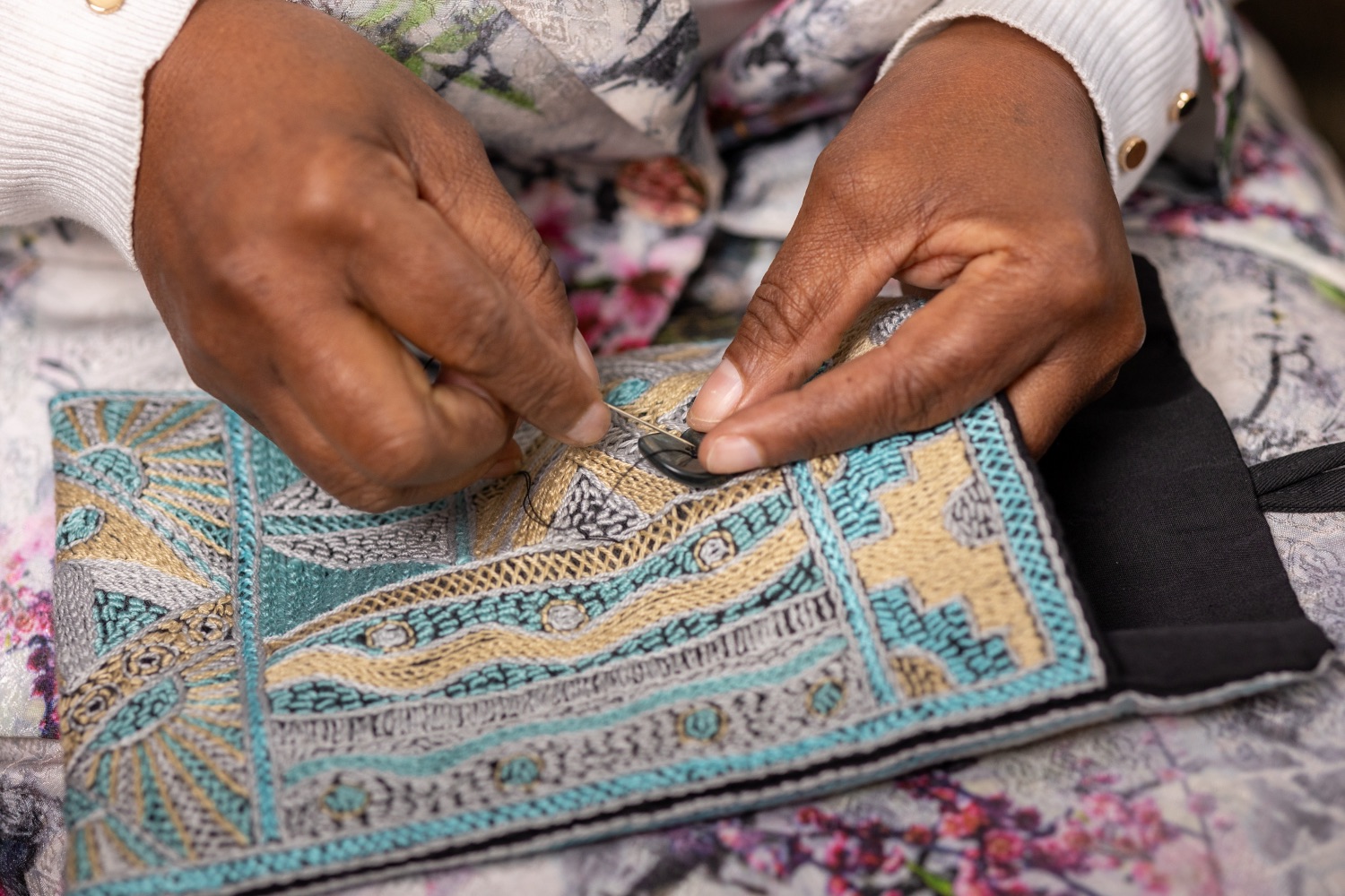 Started in 2001, Kopanang began as a small skills project and quickly evolved into a bold creative collective. Today, over 20 women in Gauteng, and 20 more at our sister site, Ingomusa, in Mpumalanga, design and produce hand-embroidered, one-of-a-kind pieces from home.