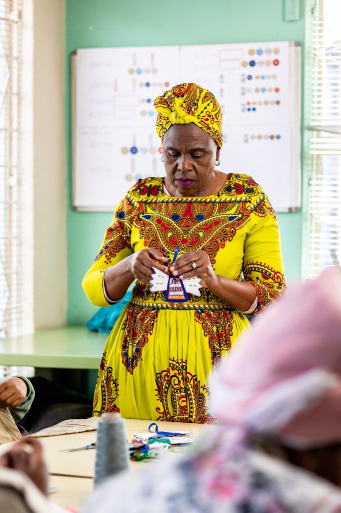 Each week, groups meet at our central hub just outside Johannesburg to exchange ideas, collect materials, share techniques, and deliver finished work for quality control. From there, they take the craft home — where work fits around real life.